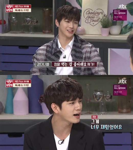 〔記者陳立妍/台北報導〕南韓限定男團WANNA ONE自去年8月出道後人氣所向披靡,日前成員姜丹尼爾、邕聖祐上料理節目《拜託冰箱》作客,被封為「吃貨」但擁有傲人腹肌的姜丹尼爾,自爆「從不減肥」,更透露能喝5瓶燒酒的好酒量。