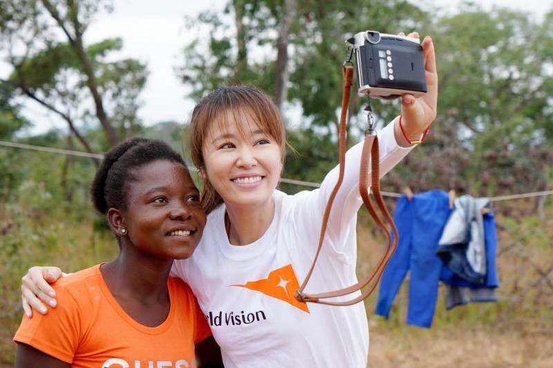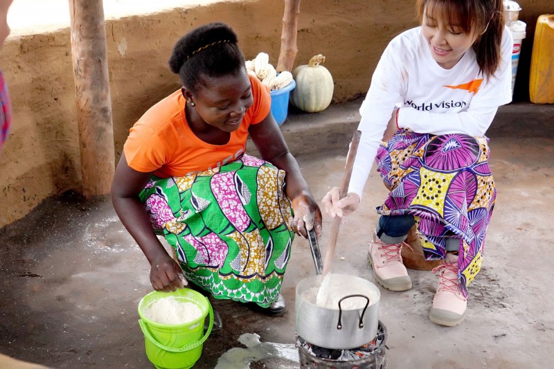 她日前隨展望會到非洲尚比亞探訪,還見到資助4年的15歲「女兒」,當地缺水資源讓她感慨之後珍惜現有的環境跟水資源,她在非洲3天,與資助的女兒一起烹煮當地主食Nshima(玉米糊),又陪她步行到平日打水的地方。「一個15歲的女孩,每天包辦所有家務,做飯挑水、照顧弟妹,上學回家後還要做功課,她得負責這麼多的事情,看了蠻心疼的。」