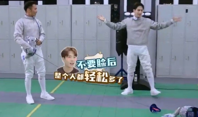 初見面就邀謝霆鋒比賽劍術想來個下馬威,但沒想到原本想出風頭的王嘉爾,卻被謝霆鋒的一招大絕「劈腿出劍」嚇得驚呆了,緊接著謝霆鋒又像演武俠片似的旋轉出劍,王嘉爾看的一愣一愣,還惹得全場大笑。