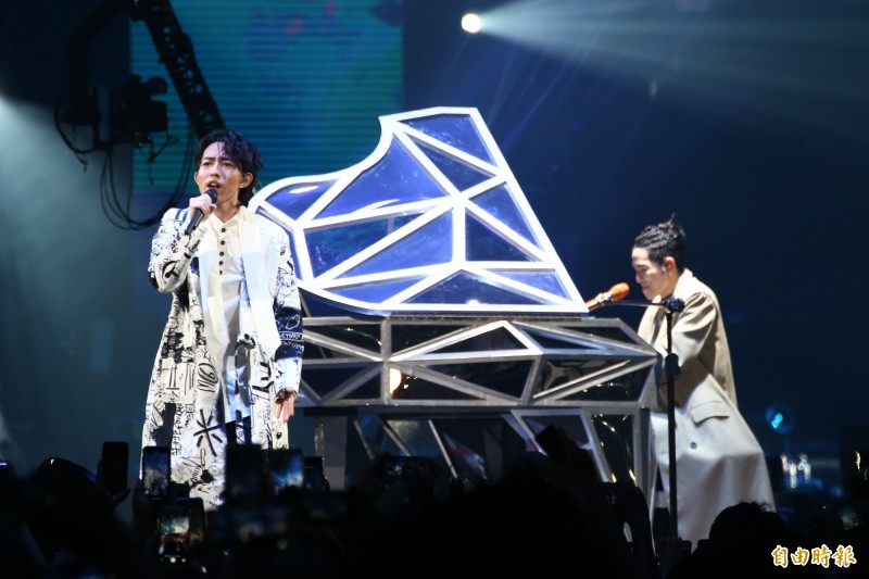 林宥嘉把10年來首度同台獻給蕭敬騰「娛樂先生」演唱會,一登小巨蛋就大喊:「老蕭我來了!有沒有驚喜?」老蕭親暱牽著林宥嘉一起坐到鋼琴椅,兩人搭肩抬槓,林宥嘉在「金曲歌王」老蕭面前自嘲還沒拿到「那座獎」,老蕭一知林宥嘉今年沒出專輯沒入圍,綜藝魂上身:「今年沒有周杰倫、蕭敬騰、林宥嘉,『哎呀遜斃啦』!」還一度口誤把主持金曲獎講成金馬獎,糗到當場趴地,求林宥嘉接話:「我在等你救我。」