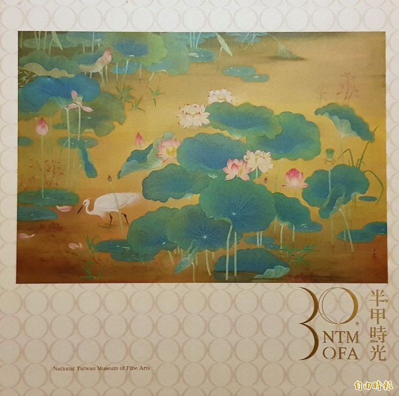 〈蓮池〉是國美館第1件通過指定為國寶的作品,作者為捕捉荷花清晨盛開最美的時刻,在嘉義鄉下牛斗山找到一大蓮池塘,多次前往觀察、寫生。把荷葉盛展,露珠於葉上凝結欲滴,花朵或含苞或綻放,鷺鷥覓食涉水帶起水漣漪的聲音,以及水面下依稀可見水草與小魚的景致,以石青、石綠染荷葉,嫣紅敷花,水面施以泥金等,使全作顯得富麗典雅。