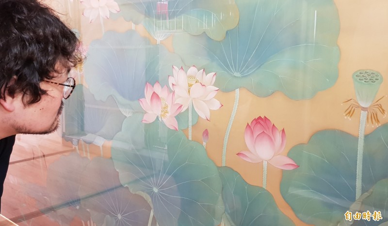 國美館也特別為平塚牧人這位遠方來的近鄰說明展示了〈蓮池〉,也讓平塚牧人觀賞以〈蓮池〉創作的VR作品,讓平塚牧人瞭解,原來百年前有位台灣畫家赴日習膠彩,回台後以台灣風作創造了經典。於是,平塚牧人的〈Nympheas〉,以茶湯為〈蓮池〉鋪陳了金黃色澤,以台南知名冬瓜茶製成的果凍,則使〈蓮池〉的水下世界更為豐富多彩。
