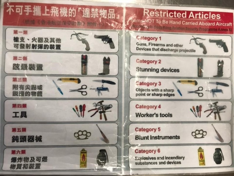 警察來後,李亮瑾被問了一些基本資料外,還要她簽一張攜帶違禁品單子,好在此次只是警告,她也提醒大家「法律前沒有不知者無罪這件事」、「出國前記得再度檢查」。李亮瑾自曝曾在香港被海關搜身。(翻攝臉書)李亮瑾PO出香港違禁品項目,提醒大家注意。(翻攝臉書)