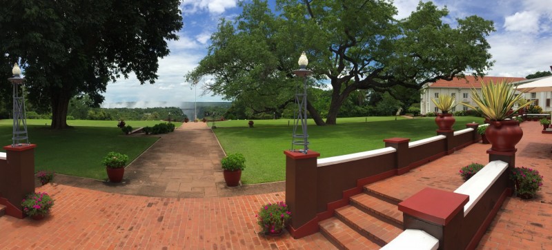 穿越充滿殖民風格的大廳,飯店後方花園直接面對瀑布與鐵橋,雖然瀑布的流水因為落入峽谷而遮掩,但上空的霧氣卻很明顯,整體環境優雅開闊、綠樹成蔭,非常適合新婚夫妻來此度蜜月。若每晚超過萬元的住宿費用太昂貴,也可選擇來此用餐,或享用正統英式下午茶。