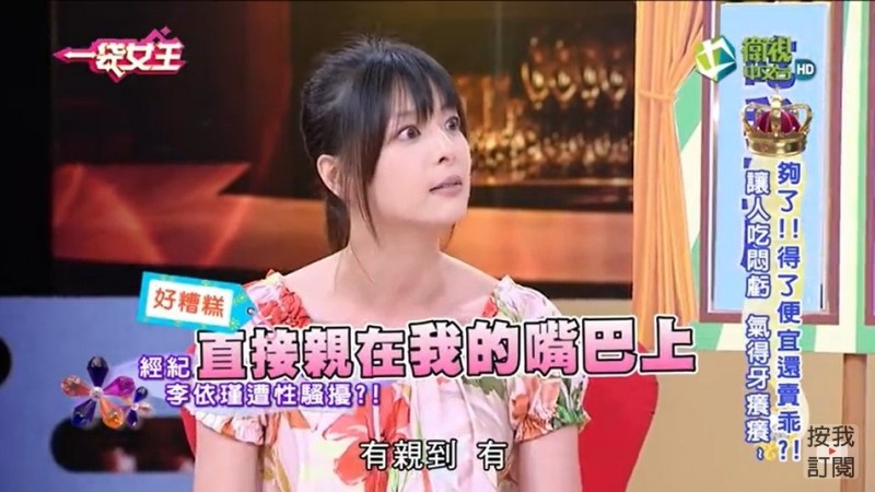 李依瑾還透露,後來她正式進入演藝圈,遇到一名不懷好意的經紀人,先是假藉幫她上台步課,把她叫進一個小教室,一整個過程不斷言語性騷擾,原以為對方只是愛開黃腔,沒想到接著該經紀人又說進行表情訓練,居然在過程中直接強吻她,甚至還相當有優越感地表示「這是我特地送給妳的禮物」,讓她相當生氣卻也不知道如何是好。現在來賓起鬨:「他一定是演藝圈的人!」不過李依瑾則表示不方便透露,也因為該事件而離開了那間公司。