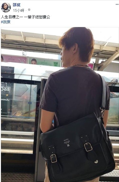 邵庭近期與老公一起到泰國曼谷旅遊,由於天氣十分炎熱,已經是短髮的邵庭還是綁起了包包頭,顯得更加俏皮可愛,在這張兩人合照中,閃光哥還是一如往常的被打上馬賽克,沒想到不久後邵庭PO出一張老公等車時微側臉的背影照,且完全沒有後製,能清楚看到閃光哥的側臉,帥氣模樣讓邵庭把持不住大喊「我撲」,更告白「人生目標之一,一輩子迷戀擾(老)公」。