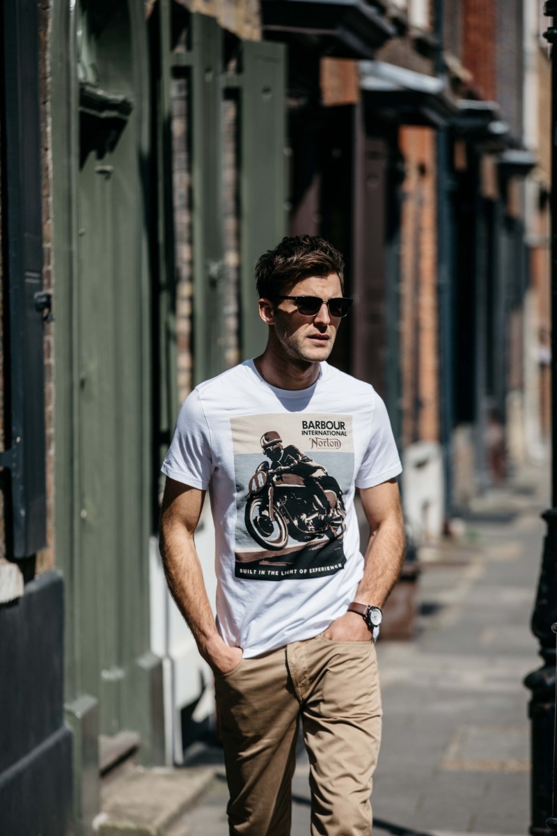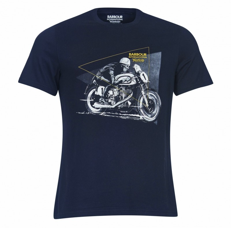 創立於1894年的Barbour以防風防水油布夾克聞名,深受英國王室喜愛,旗下支線Barbour International自1936年問世以來,更是以重機形象與機能奠定名號,本季與歷史悠久的英國重機品牌、創立於1898年的Norton合作設計短袖T-shirt。迎接夏季,款式以透氣舒適、高延展性的針織透氣布料製作,並於T-shirt上以英倫復古的「Café Racer」速寫重現騎士文化,以年輕潮流感受彰顯寫意自由的精神樣貌。