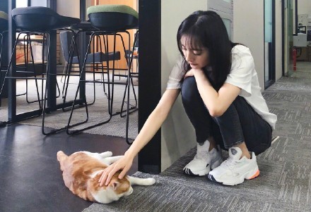 楊冪是演藝圈中著名的愛貓人士,曾在演出《三生三世》時收養了「師兄」,之後又養了「倉倉」。工作室也捕捉了她與貓咪玩耍的模樣,只見她穿著白色上衣搭配黑色長褲,打扮十分休閒,她沒有刻意打扮的模樣看起來少女味十足,楊冪深蹲在地意外讓美臀曲線現形,但也因為這個姿勢讓褲子口袋中的手機差點被擠出。事後還有人幫手機加上OS「我忍住不掉」、「承受著手機時代程受不了的壓力」,笑翻其他粉絲。