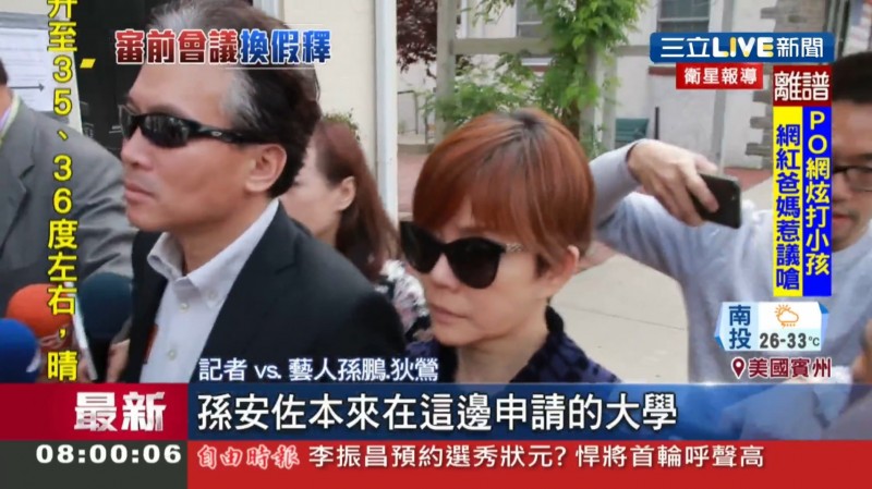〔記者曾德蓉/台北報導〕狄鶯、孫鵬18歲獨子孫安佐3月因涉嫌恐攻威脅遭捕,夫妻倆赴美救子,至今已滯美逾2個月,孫安佐台灣時間今凌晨2點再度出庭,針對「恐怖威脅罪」認罪,檢方撤銷持有犯罪工具意圖犯案罪名,孫安佐最快本月底即可假釋,屆時狄鶯只要再替兒子支付700美元(約台幣2萬1000元)賠償金,孫安佐就可返台。
