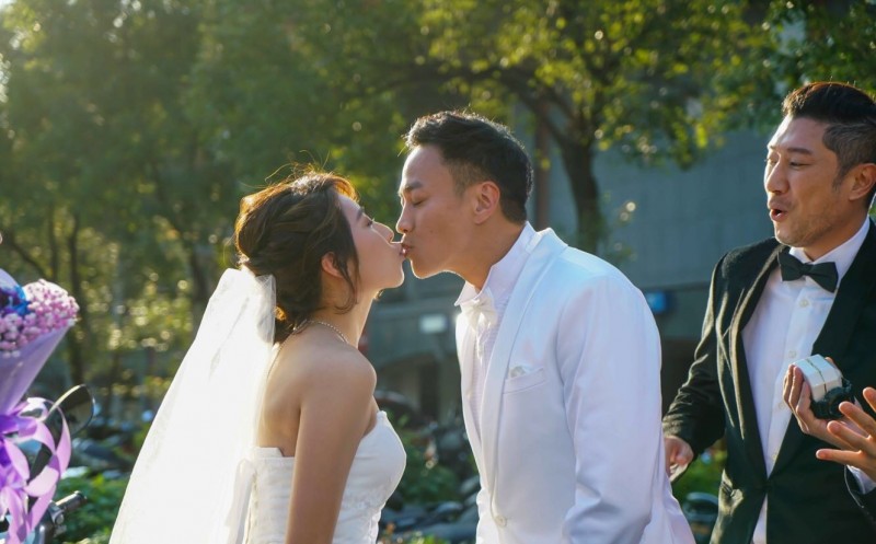 〔記者蕭宇涵/台北報導〕張鈞甯在TVBS《翻牆的記憶》結局中披上白禮服,當起何潤東和楊晴婚禮上的最美伴娘,拍戲時何潤東又導又演,丟下新娘、伴娘在一旁,讓兩人抓到時間不斷拍照,乍看之下還以為是張鈞甯、楊晴兩人的婚禮,這讓何潤東吃醋的說:「感覺我被排擠了。」