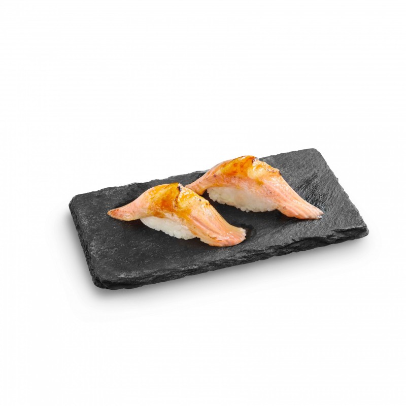 美威團隊嚴選鮭魚中段油脂最均勻的肥嫩部位,以高溫烘烤鎖住鮭魚獨有的綿密脂香,佐上主廚特製酸甜醬汁後炙燒,讓鮭魚菲力融入酸甜焦香,搭配鮮美時蔬與外酥內軟的竹炭麵包,豐富夏天味蕾。此外,美威鮭魚亦推薦適合夏日大啖、滑嫩鮮甜的「加州起司炙燒鮭魚握壽司」,將產地直送的炙燒鮭魚,與金黃起司、明太子美乃滋交織,驚艷每一口。
