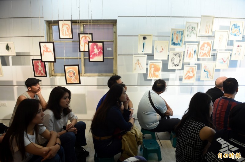 展出地點在中山北路二段巷弄間的「中山光一」,3樓展區展出去年5月得知好友過世後薛喻鮮在28天內畫的30張「裸畫」,閣樓展區則是年初的作品,她說,「不想跳舞的時候,我就畫畫。」