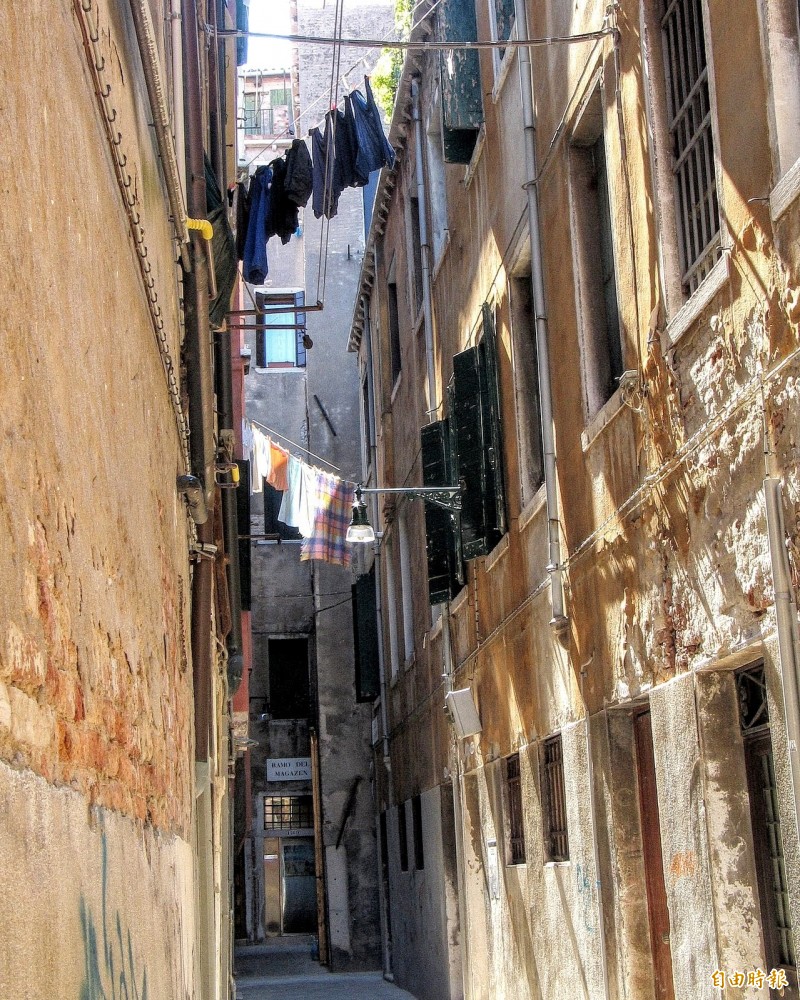 迷路,加上蓄意挑小路,結果走了很多窄巷,看見威尼斯比較隱私的部分。像破敗的石牆磚牆、生鏽的鐵窗、朽爛的木柱木門,還有牆角隨處可見的垃圾、惡臭的狗糞――旅遊指南裡沒有的。不只眼睛旅行,鼻子也在旅行。