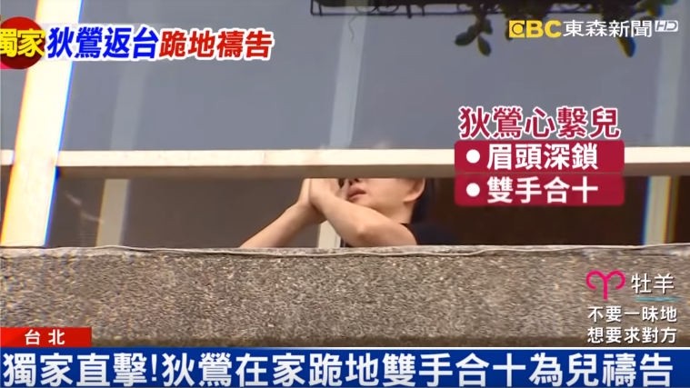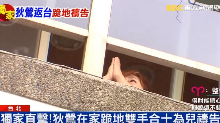〔記者鍾智凱/台北報導〕狄鶯、孫鵬18歲獨子孫安佐在美國闖出恐攻風暴,今狄鶯率先撤離美國,抵達台灣後直奔孫鵬開價8600萬的北投別墅,根據《東森新聞》,狄鶯在93坪別墅的陽台對天下跪,面容憂愁,疑似邊哭邊跪,哭腫了眼,雙手合十向天為孫安佐祈禱,這與今孫鵬回應媒體一致,夫妻同心合十。