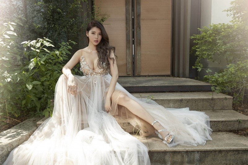 〔記者粘湘婉/台北報導〕伊林名模殷琦日前宣布嫁給擁有10億身家的台中高明精機總經理張仕育,小倆口將在23日舉辦大喜晚宴,今她曝光4套唯美婚紗照,選定以色列品牌,深V蕾絲大秀F罩杯深邃事業線,還有美人魚魚尾白紗展現姣好身材曲線,以及風衣日常生活風格,多變風格展現名模氣勢,小倆口還合比手指愛心,婚紗照洋溢甜蜜幸福氛圍。
