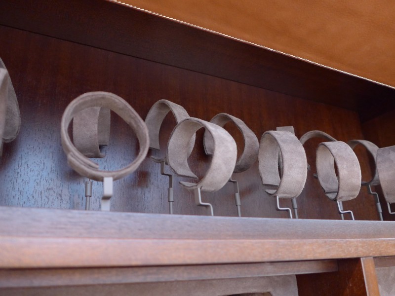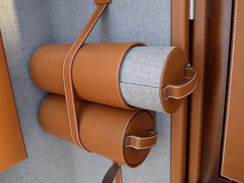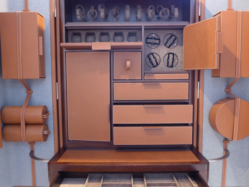 更有「梗」的是銜於兩扇門片內側的各種可移動式收納盒,基本樣式包括文件式與圓筒式,最直接的功能在於因應腕錶收藏者隨時的出差,錶主能隨心所欲的選擇此趟行旅的傍身錶款,依錶款數量選擇所要置放的收納盒,給予腕錶便於攜帶與安全無虞的奢華保護。
