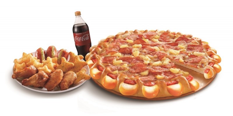 必勝客20周年限定「炙烤香腸雙色芝心」比薩上市期間,同步推出「芝心派對餐」優惠,消費者即日起至9/3購買大比薩(限定炙烤香腸雙色芝心餅皮)+哈燒小四拼一份+1.25L可樂1瓶,特價698元。
