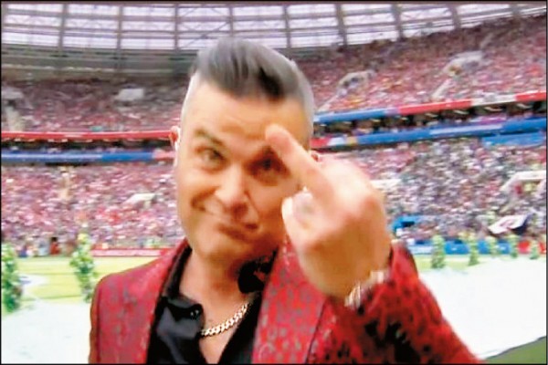 〔娛樂頻道/綜合報導〕4年一度的世足賽,本月14日於俄羅斯火熱開踢,擔任開幕表演嘉賓的英國「壞小子」羅比威廉斯,在演唱尾聲脫序,當著全球觀眾面比中指,引發譁然。昨日,他在受訪時首度回應此事,表示自己當時只是想表達「比賽倒數1分鐘開始」,沒想到卻比成中指,對此他感到相當懊悔。