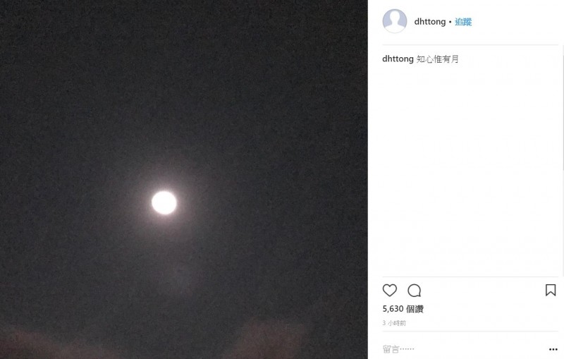 除了香港粉絲,還有來自世界各地粉絲送上花圈,昨晚悼念哥哥的粉絲擠滿花海,經過的人們也都拍照留念。而晚間11點15分,哥哥的愛人唐鶴德也在IG貼上一張月亮的照片並留言:「知心惟有月。」