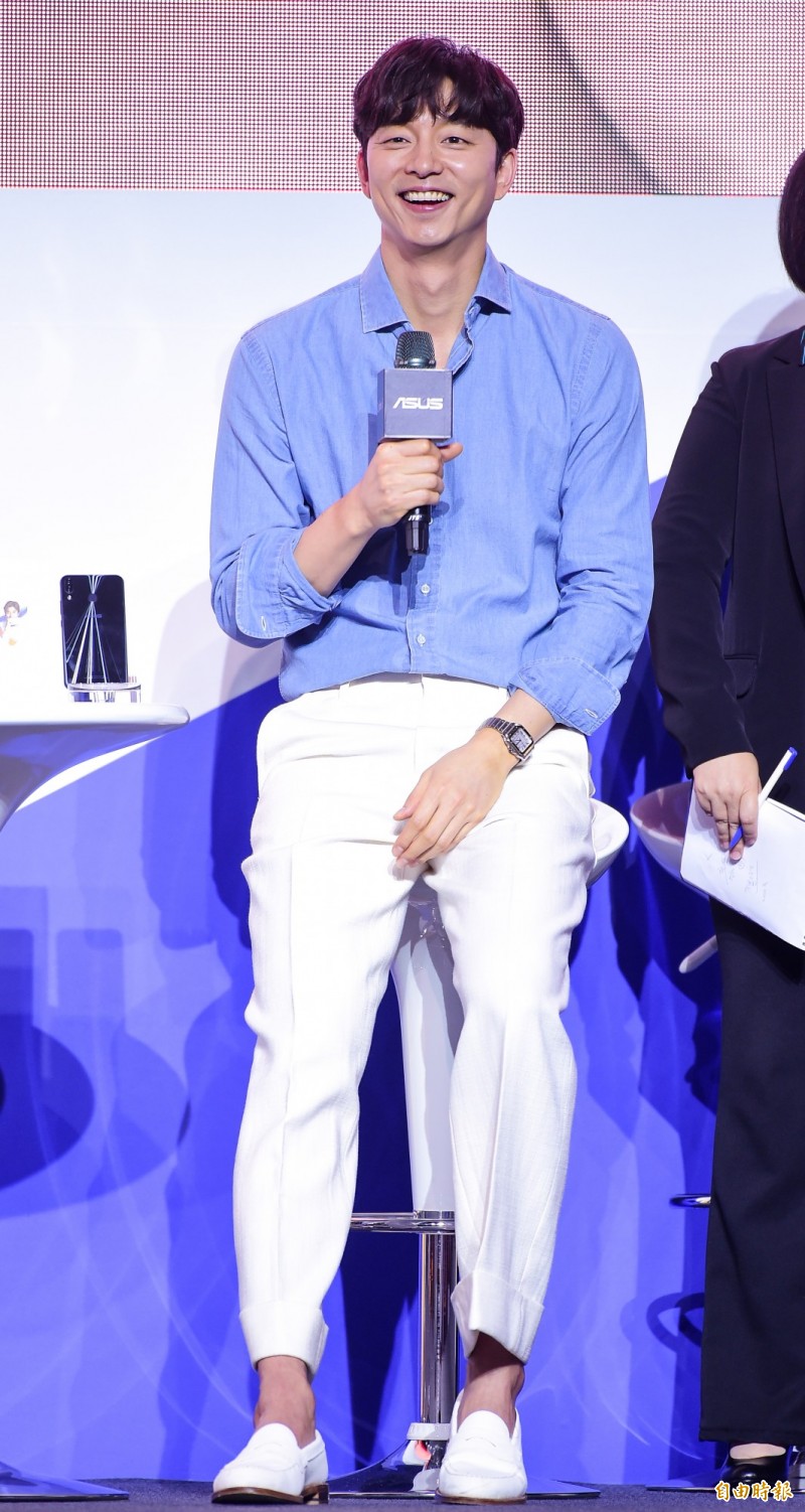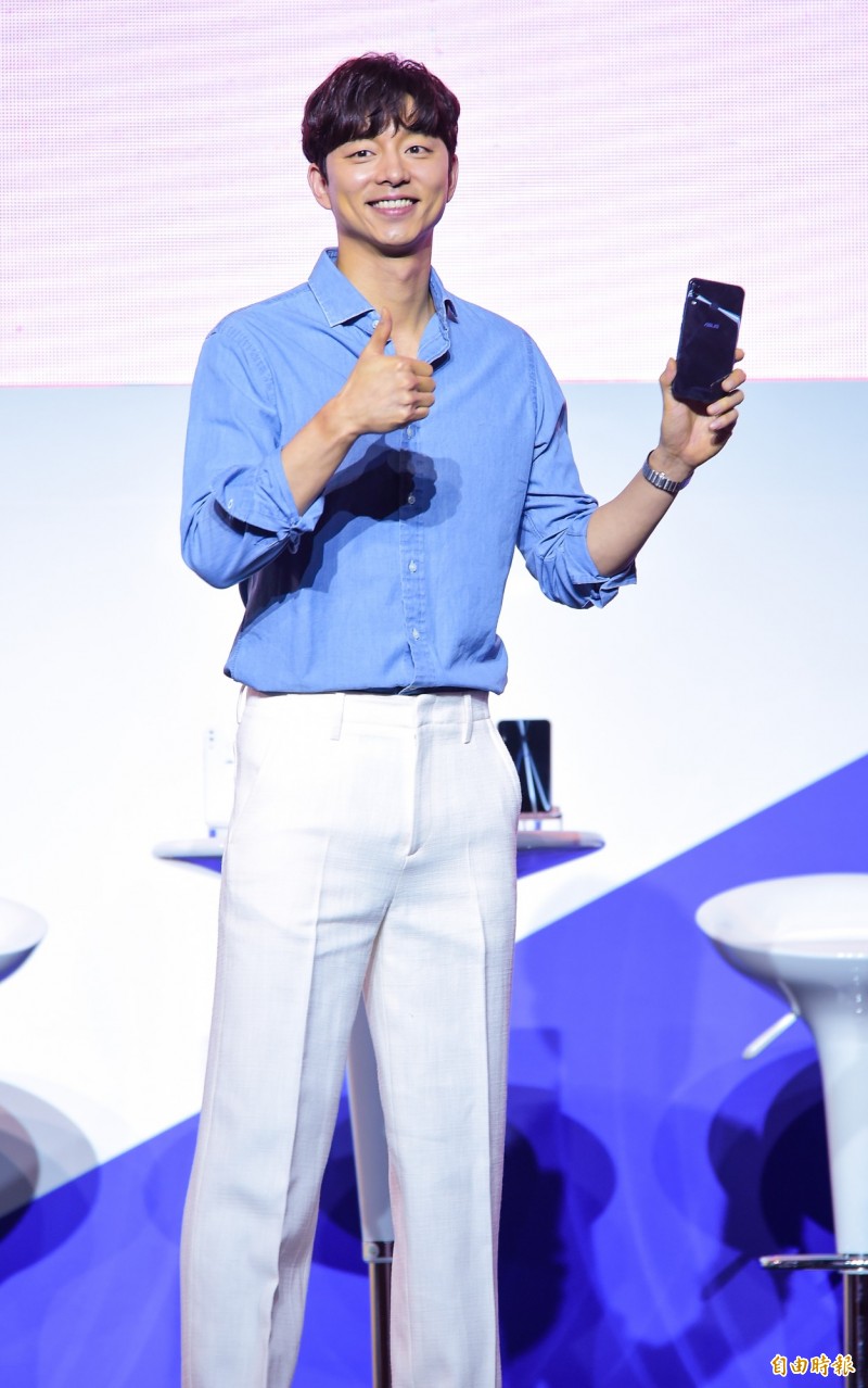 孔劉今下午身穿淺藍色牛仔襯衫、白色長褲帥氣亮相,現場粉絲紛紛拿起手機搶拍,他時隔10個月3度來台,先以韓語「好久不見,我是華碩Zenfone5代言人孔劉,在台北跟大家相見很開心」問候台灣粉絲,之後再以華語「我是華碩Zenfone5代言人孔劉」自我介紹,由於今天的活動也在泰國直播,主持人黃子佼特別cue他向泰國粉絲打招呼,孔劉除了現場大撂「三碗低咖」,並在黃子佼的教學下現學現賣泰語的「我愛你」、「謝謝」,逗樂全場。