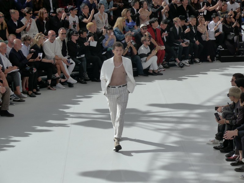Kim Jones是LV前男裝創意總監,這是他擔任Dior男裝的第一次發表會。全系列49個全新造型,以品牌創始人Christian Dior(1905-1957)先生的高級訂製服精髓,以及饒富經典的傳承精神注入男裝的時裝設計風格,遊走於花樣、自然與現代古典間,綻放全新時代的Dior Men 2019春夏時裝系列。丁海寅以及Victoria Beckham與Brooklym Beckham、超模Kate Moss與Naomi Campell等名人躬逢其盛。