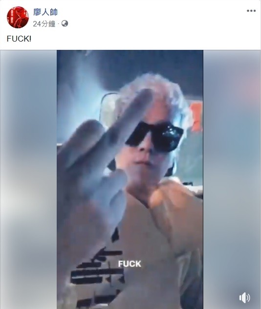 廖人帥今天在金曲紅毯上,身穿類香蕉裝,衣服寫著「這裡最不值錢叫做創意」,公開槓上金曲獎,也不諱言自己已經惹毛評審,肯定不會得獎,還嗆聲「要掃射評審」,結果真的鐵口直斷,依舊沒拿到金曲獎,他剛才在臉書罵「FUCK」,PO出搭計程車離場的影片,並對著鏡頭怒比中指,似乎表達自己的不滿,再度掀起一陣爭議。