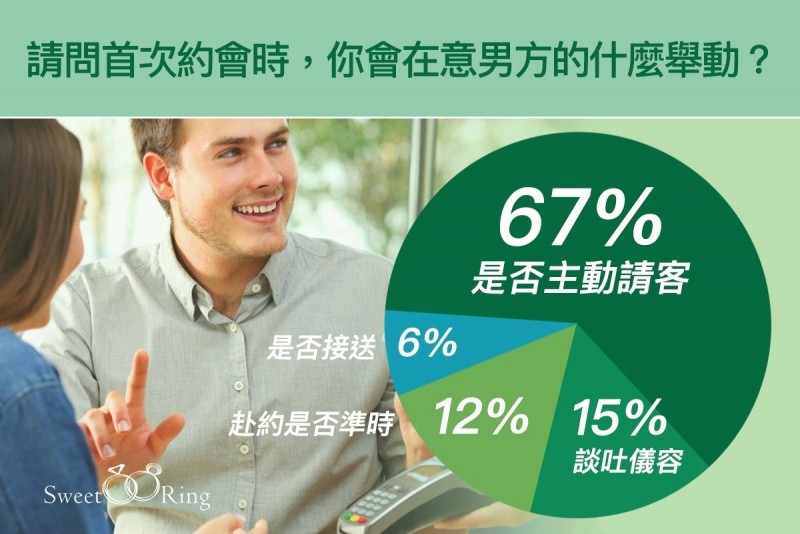 〔記者吳佩樺/台北報導〕第一次跟好感對象約會,分寸拿捏總讓男方傷透腦筋,尤其花費誰來出,似乎暗藏眉角,雖然不少人認為「AA制」是公平作法,但根據交友App《SweetRing》調查,高達67%女性會將對方是否主動請客,列為重點評分項目;男方買單成為首次約會的潛規則。