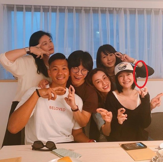 S幫昨臨時相約聚會,小S擔任主揪人,邀來固定班底大S、Makiyo、范范和黑人外,還私心找來盧廣仲,只見大夥兒彎起食指、中指,手勢像極一隻隻魚仔,似乎是在幫盧廣仲慶功。不過有眼尖的網友發現,小S耳朵旁和Makiyo手臂下的窗台,詭異出現波浪狀,疑似P圖被抓包。