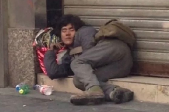 36歲彭于晏目前是影壇火紅的一線男星,他以電影《翻滾吧!阿信》、《聽說》、《激戰》、《破風》在華語影壇佔有一席之地,卻有網友昨曝光「遊民版」彭于晏,照片中,這位遊民橫躺在街頭外,地上滿是瓶罐髒亂不堪,該遊民側躺在某大樓鐵門旁,雖留著長髮看似邋遢,外貌卻神似彭于晏,五官俊俏。