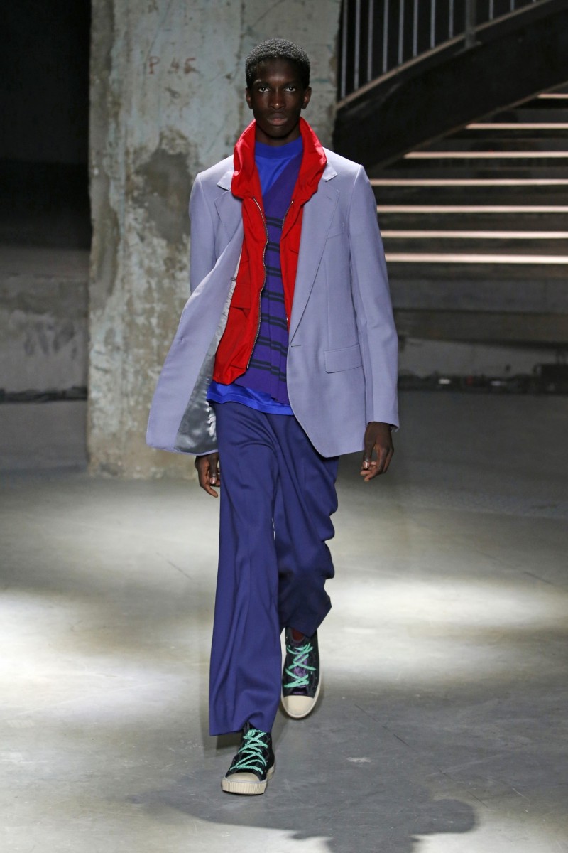 〔記者方惠宗/巴黎報導〕Lanvin 2019春夏男裝發表會在本屆巴黎男裝週最後一天上午登場,秀場選址巴黎第16區的博物館「東京宮」(Palais de Tokyo)。這一天,外頭氣候爽朗、艷陽高照,秀場則是一股暗黑神秘,揭開Lanvin男裝藝術總監Lucas Ossendrijver所帶來時尚款式與男裝世界的精髓渾然融合。
