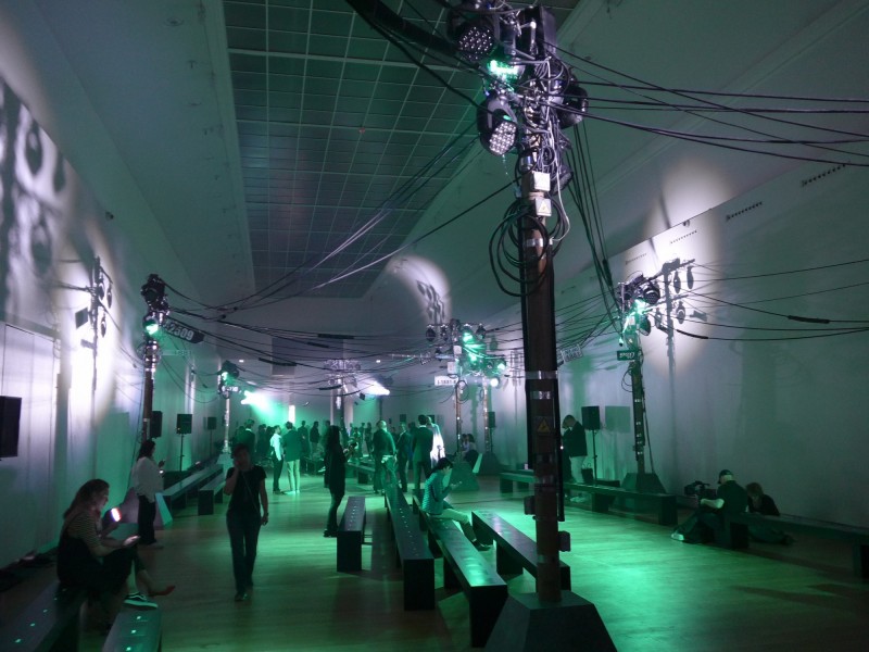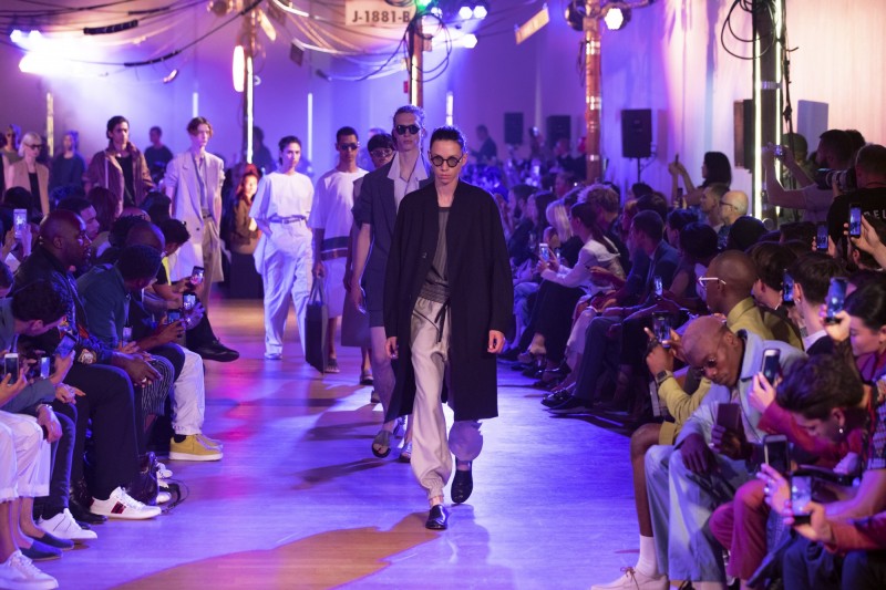 一進Cerruti 1881秀場,紅綠燈、電線桿與電線盤根錯節,令人聯想日本傳統街道,亦呼應著本季源於永恆優雅、精緻細膩的日本傳統織物設計靈感。在經典的材質、剪裁、圖紋和細節上,與Cerruti 1881過往設計元素和充滿時尚感的無結構剪裁交錯融合,創造風格空靈的造型和質感。