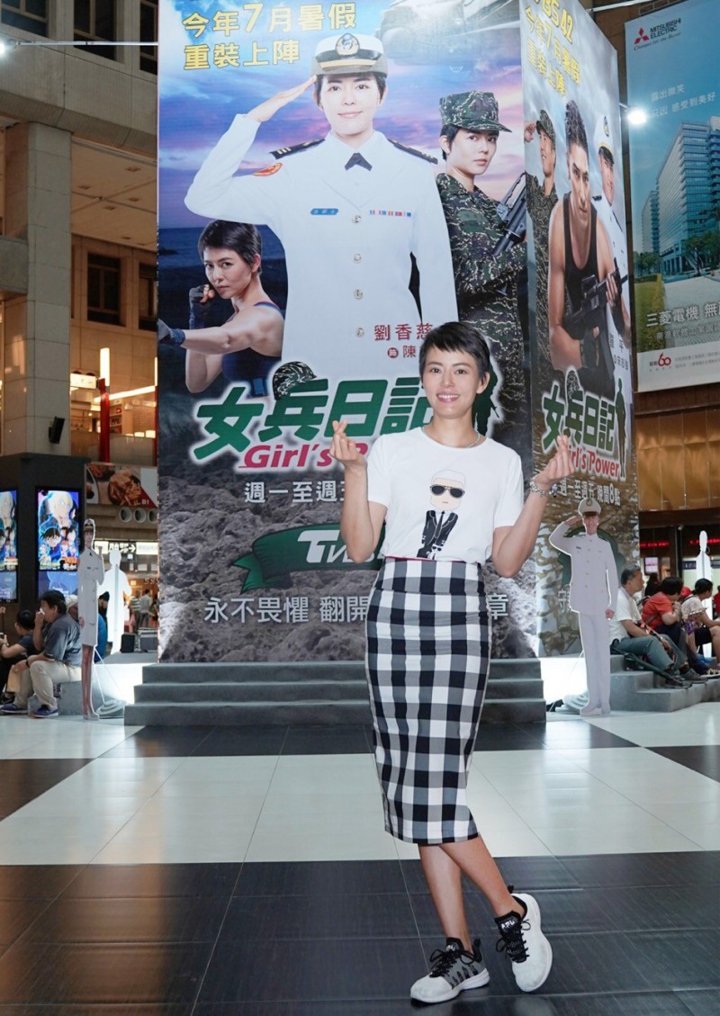〔記者蕭宇涵/台北報導〕劉香慈為TVBS新戲《女兵日記》積極宣傳,但由於小嫻、楊晴以及同劇女兵們都在屏東趕拍戲,她只好一肩扛起「整連」責任,今一連跑了2場活動,更大方在信義區引領百人大跳「九條好漢在一班」,她笑說:「原本以為升格連長後可以輕鬆點,沒想到行程滿檔。」