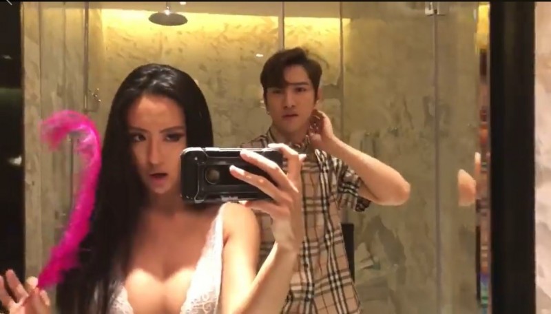 薔薔昨天深夜還在臉書PO出一段搔首弄姿的影片,片中她穿著無袖深V白色蕾絲上衣,只見她在說話的過程中,小麥色的巨乳雙峰幾乎快彈出來,一不小心就可能露點,她手上還拿著一根羽毛,不停在身上游移,並發出呻吟聲,狂野舉動撩得網友心癢癢。她身邊還有另一名男子,有趣的是,對方最後還對著薔薔說:「妳才可怕,我看妳這樣好害怕。」逗笑一票網友。