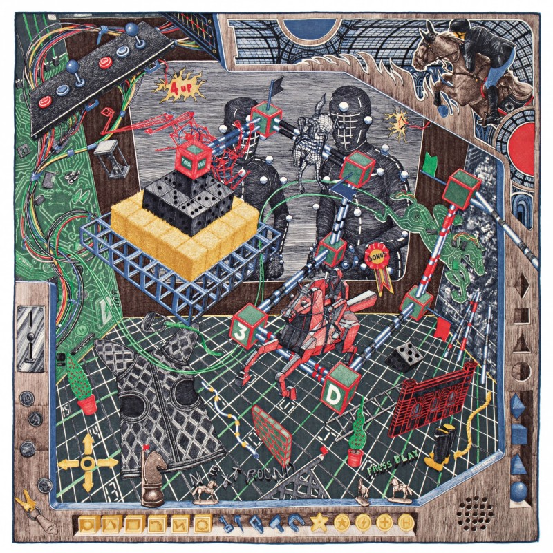 無論領巾或圍巾,愛馬仕透過藝術賦予獨到風格。尺寸最小、65公分見方的Bandanas系列方巾的圖紋印花、色彩與設計靈感是源自美國西部牛仔所佩戴的棉質領巾,本季由法國藝術總監與時尚設計師Benoît-Pierre Emery帶來其所構思的Collection Équestre印花;他以釦環和馬韁繩等馬術用具元素交疊出獨特地抽象字母圖紋。希臘設計師Elias Kafouros則以「Let’s play!」為題,將不同時空背景的遊戲集合於一款100公分見方的喀什米爾羊絨與真絲混紡圍巾;從積木到3D電玩、棋盤到搖桿遊戲機、真實到虛擬想像,全飄浮在一個被巴黎大皇宮玻璃屋頂籠罩的虛擬世界中,名符其實「The Game」!