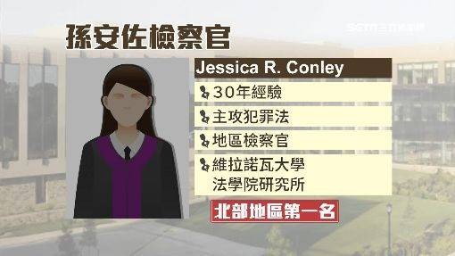 據調查,負責孫安佐案的檢察官,畢業於美國維拉諾瓦大學法學院研究所,具備30年法學經驗,是一位專攻犯罪法的資深檢察官。《三立新聞網》報導,這位檢察官名叫Jessica R. Conley,層級為「地區檢察官」。