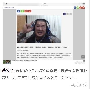 這次黃安更大發厥辭,說自己常常被嗆「為何用微博不用臉書」,黃安則反擊:「用臉書就代表愛台嗎?」還說臉書是美國人的,跟台灣一點關聯也沒有,反倒對總統蔡英文喊話,要蔡英文用微博,原因是用臉書中國也看不到。不過這則發言已經從微博消失,原因不明。