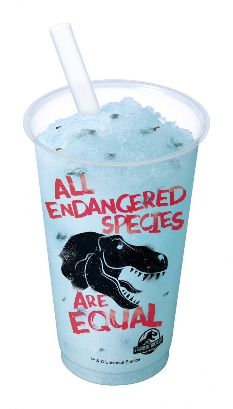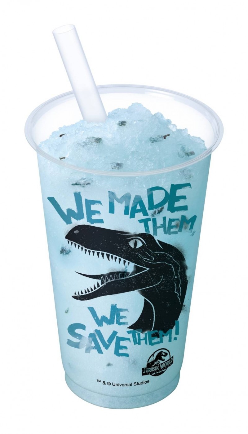 〔記者林欣若/台北報導〕電影《侏羅紀世界:殞落國度》即將上映,全家便利商店繼去年的小小兵芒果酷繽沙後,今年再與侏羅紀聯名,推恐龍杯款的薄荷巧克力冰沙,6/6與電影上映同步開賣,限量30萬杯,售完為止。
