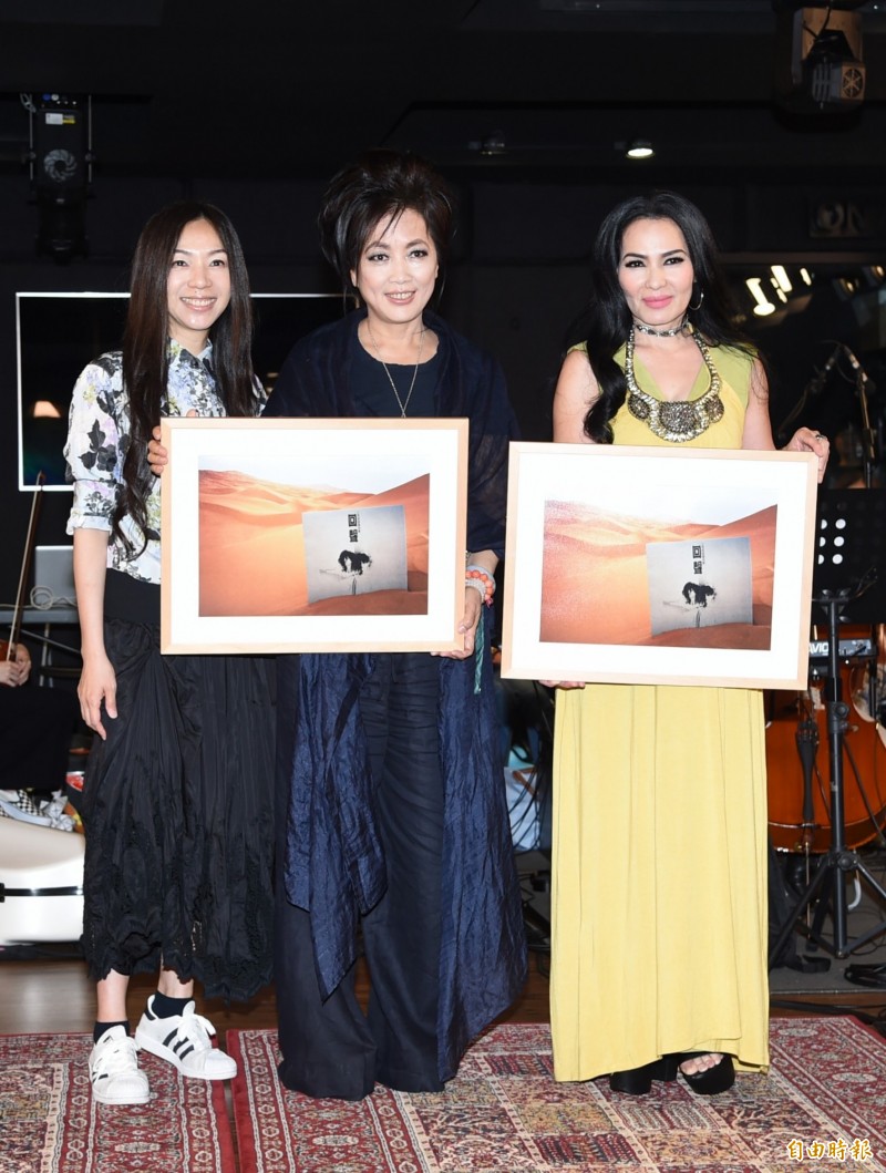 〔記者羅凌筠/台北報導〕已故作家三毛是90年代樂壇極具影響力的作詞人,兩大美聲天后齊豫、潘越雲為她首度合體攻蛋,重現三毛筆下經典金曲 「夢田」、「一條日光大道」、「橄欖樹」、「飛」等歌,昨日總彩排,文青女神萬芳也來探班,特別送上她去撒哈拉沙漠旅遊時,把回聲專輯放在沙中的照片,祝福齊豫及潘越雲開唱成功。