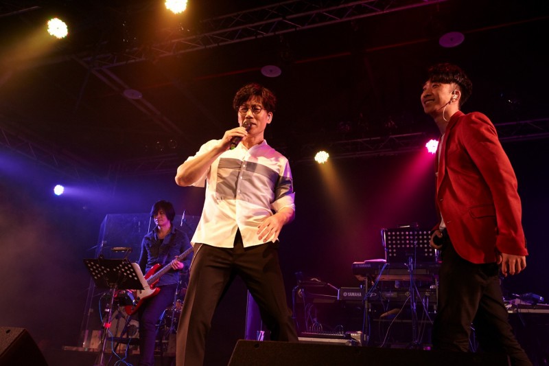 好友賀一航、康康、王瑞霞都到場支持,王瑞霞上台獻花時被逮個正著,2人被拱合唱《小姐請你給我愛》,還改歌詞互虧對方是「歐吉桑、歐巴桑」,足見30年好交情。另外,同門師弟張懷顥特別登台合作,由他B-box,羅時豐則挑戰RAP,羅時豐大呼過癮說:「瞬間年輕了20歲!原來我也可以RAP!」