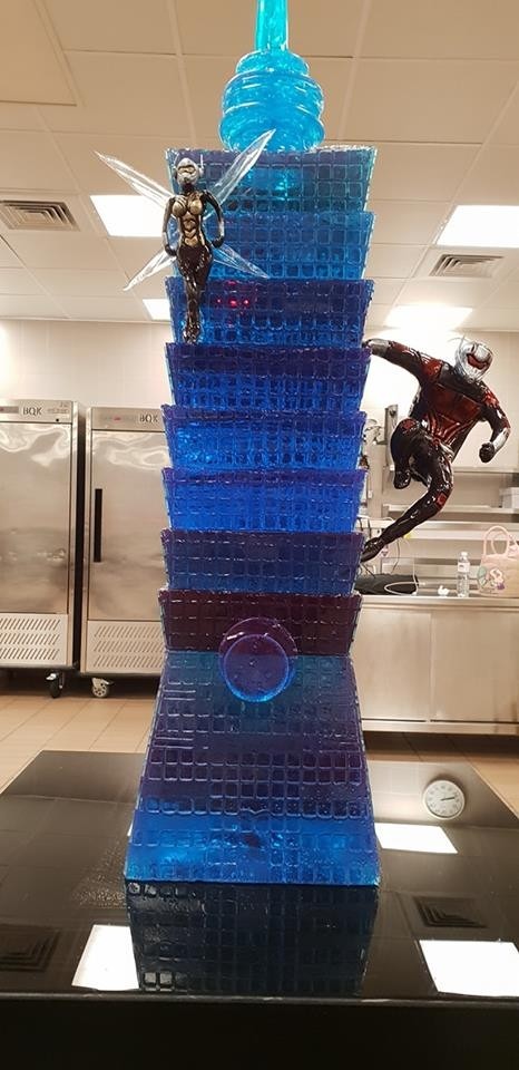 該糖雕作品巧妙利用「螞蟻愛吃糖,黃蜂釀造蜜」的概念將蟻人與黃蜂女的角色與台灣地標「台北101」結合在一起,同時也象徵電影的票房能夠步步高陞,一集比一集賣的更好。保羅和伊凡潔琳一看到迷你版的蟻人、黃蜂女拉糖人相當興奮,等不及拍完照便吃得津津有味,可愛反應也讓大家見識到他們充滿童趣的一面。《蟻人與黃蜂女》7月4日在台上映。