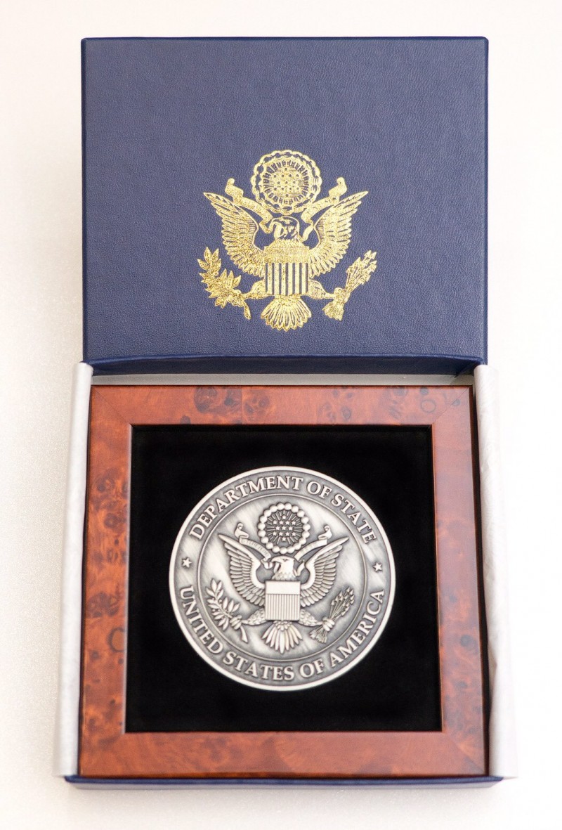 〔記者楊明怡/台北報導〕美國國務院教育暨文化事務局助理國務卿瑪麗·羅伊斯上任後首次訪台,今日拜會文化部長鄭麗君,並致贈美國國務院院徽予文化部,肯定台美文化的良好互動。